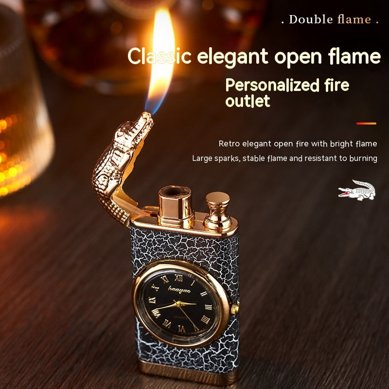 Double Fire Lighter With Quartz Watch Metal Inflatable Windproof Blue