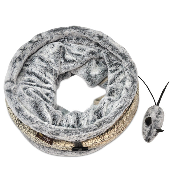 P.L.A.Y’s Purr & Pounce cat tunnel with its super smooth faux fur interior, its fanciful peep-hole which will allow your feline friend to spy on the humans without being seen, and an interactive adorable little mouse featuring a pouch for catnip, is the perfect cat tunnel to spoil your beloved kitty and keep him entertain for hours!